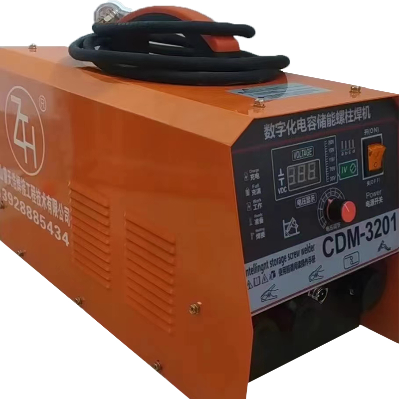 儲(chǔ)能式螺柱焊機(jī)可將螺柱、內(nèi)螺紋螺柱、銷釘?shù)阮愃频脑赣诮饘俟ぜ稀T诤附舆^(guò)程中,通過(guò)元件尖端放電使儲(chǔ)能電容放電,放電時(shí)間0.001-0.003秒,不需要?dú)怏w或陶瓷環(huán)保護(hù),熔深約0.1MM。
